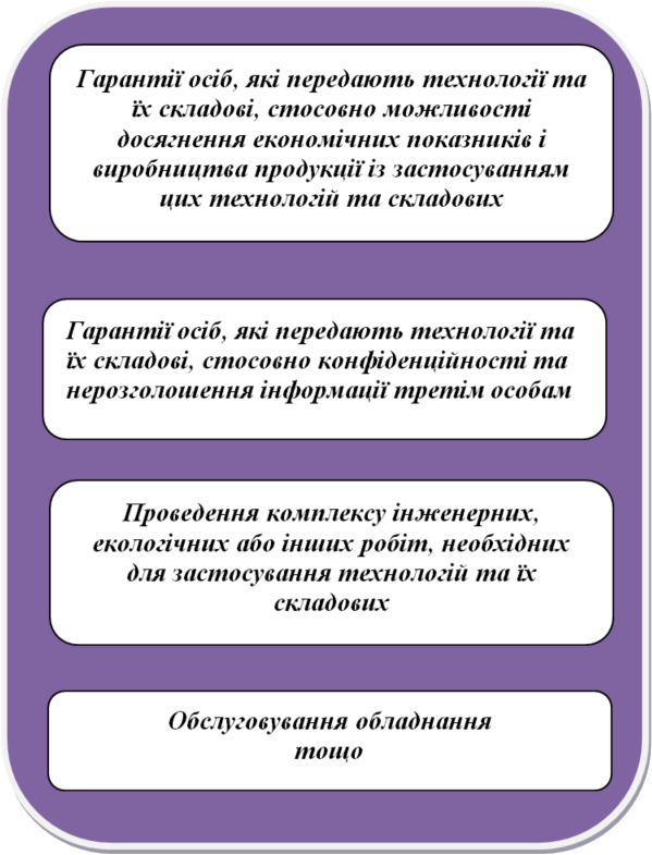 ▪ строки, місце та спосіб передачі технологій та/або їх складових;